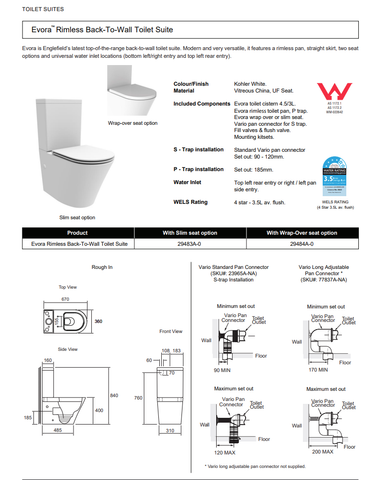ENGLEFIELD EVORA BACK TO WALL TOILET SUITE WITH LOW PROFILE SEAT